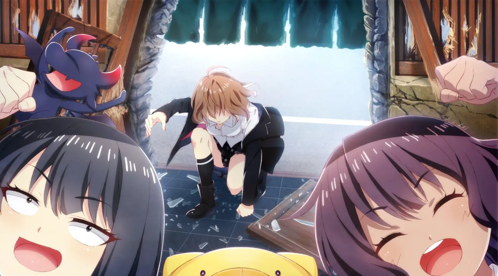 这作有一个特点, 那就是夸张的人物行为,里面人的对话都有不少完全没有逻辑,人不会说人话。 还包括小女孩当市长、普通女子高中生一本正经的对抗外星人之类的。再加上Q版的动画演出。 突出的就是一个“不正经”的氛围,颇给人一种喜剧风无厘头的感觉。可能还有着给人增加笑点的意思在,可惜咱没get到。
