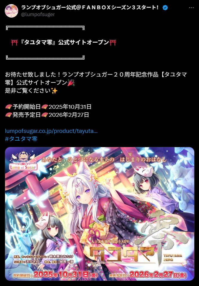 Lump of Suger宣布20周年纪念作《游魂》系列前传《游魂 零》将于2025年10月31日开启预约,并将于2026年2月27日发售。