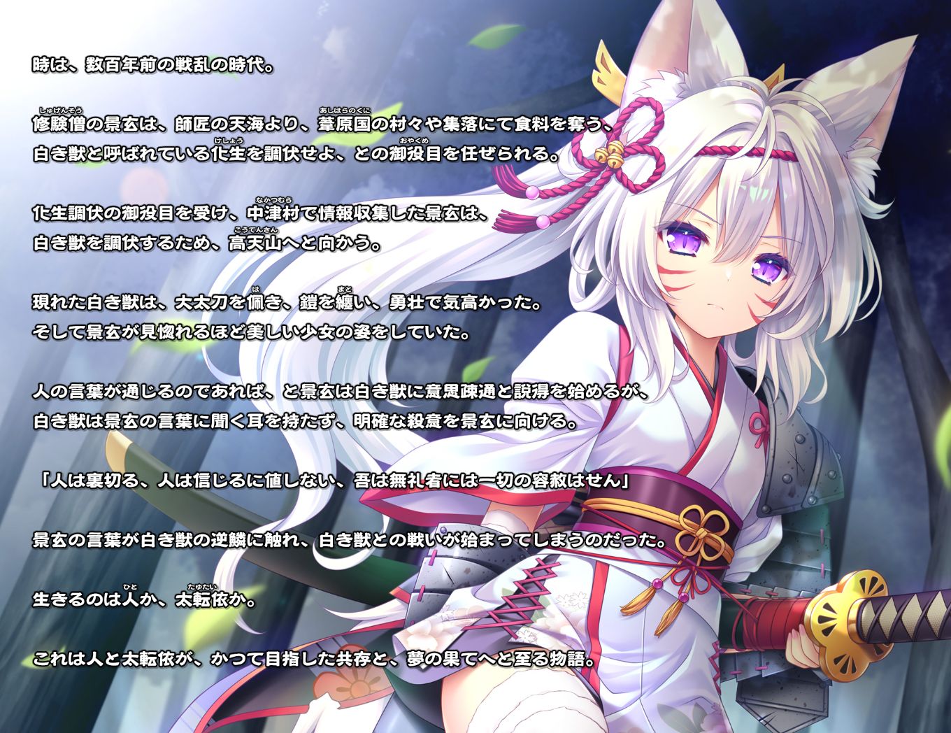 出现在他面前的白き獣佩戴大太刀,身披铠甲,威风凛然,是个美丽得令景玄都为之动容的少女。