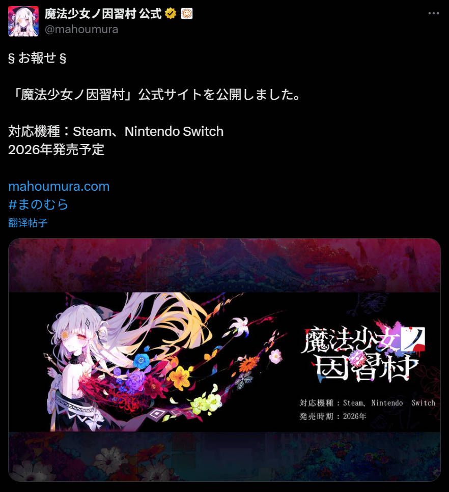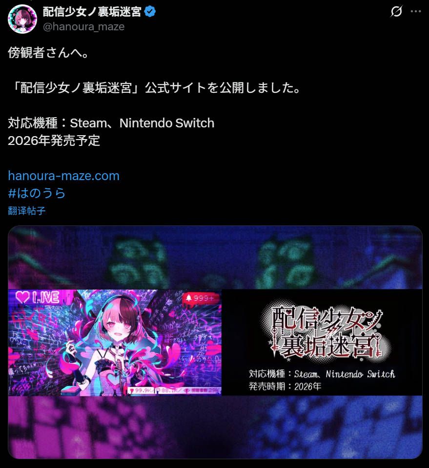 Acacia同时公布了『魔法少女ノ因習村』与『配信少女ノ裏垢迷宮』两作的网站,并宣布这两作都将于2026年于Steam/NS平台发售,目前『配信少女ノ裏垢迷宮』已公开Steam商店页面。