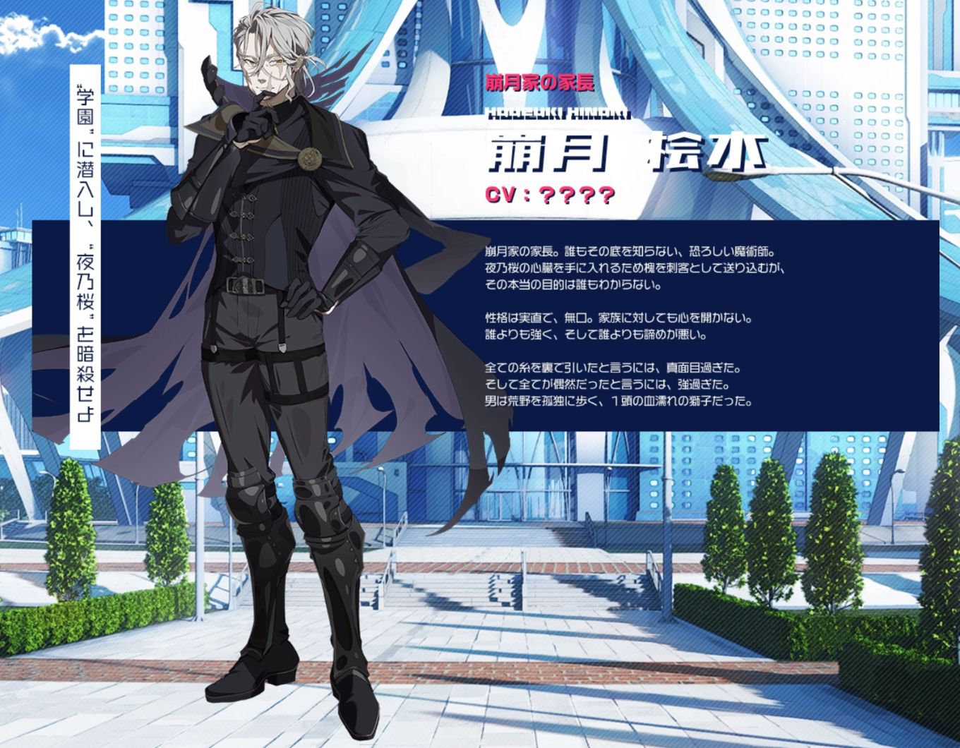 崩月家的家主。实力深不可测的可怕魔术师。 为了得到夜乃樱的心脏,将槐作为刺客送入“学园”, 但他真正的目的谁也不知道。