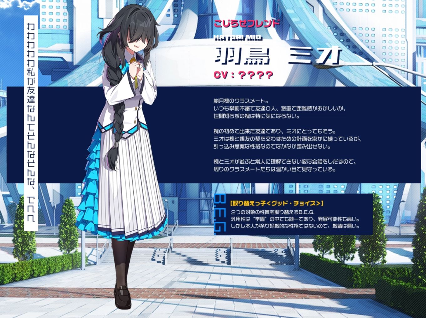 羽鳥ミオ(羽鸟米奥)——“我、我、我、我竟然能成为朋友什么的,简直想都不敢想,嘿嘿……”