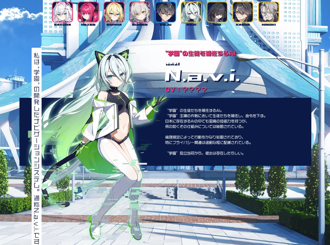 辅佐“学园”学生们的 AI。 在“学园”主导的作战中负责辅助学生,并下达命令。 虽然拥有日本现存 AI 中最高水平的技术能力, 但像往常一样,其运作机制被严格保密。