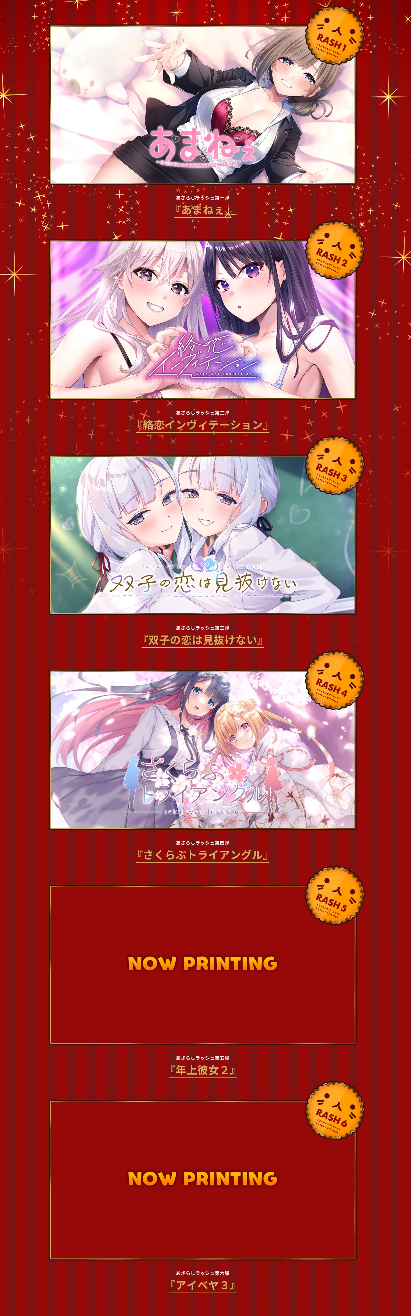 这六部作品见下图,前两弹是由子社あざらしそふと+1制作,后面四部由本社制作。