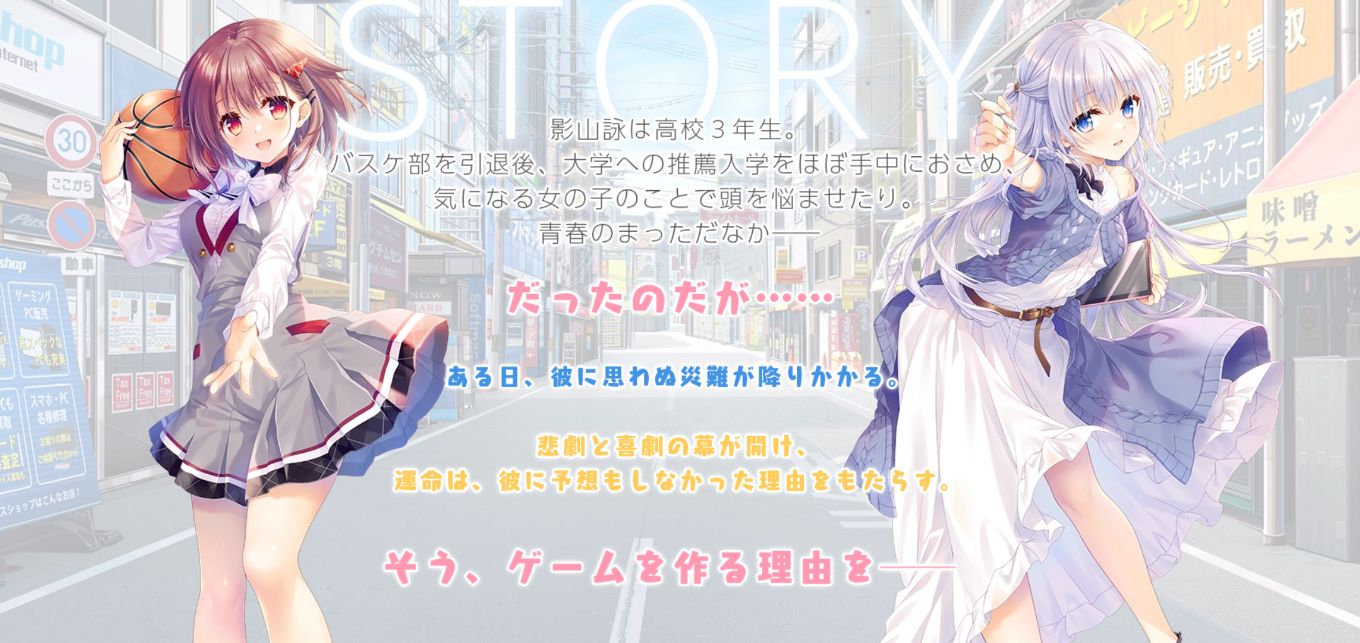 这是一个让各位玩家能够与咏一起, 一边体验美少女游戏的制作过程,一边享受其中的故事。