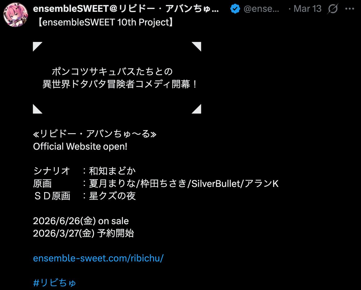 ensembleSWEET于近日公开了最新作《リビドー・アバンちゅ~る》。