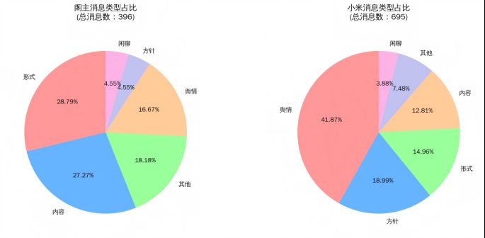 出于某些原因考虑,我们不会太过具体说明其中的内容,仅以下图来表现本人担任总监修的三届拜年纪内,与两代主催的聊天记录类型占比。