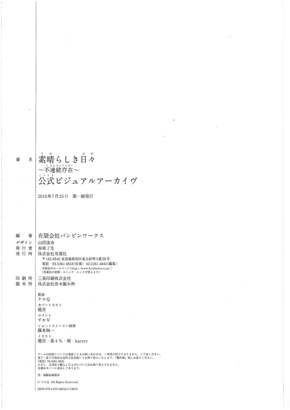 大名鼎鼎的电波Galgame 《素晴らしき日々 ~不连続存在~》的公式书, 其实还有前半部分.. 不过前半部分有几张瑟图我还在想怎么处理比较好...