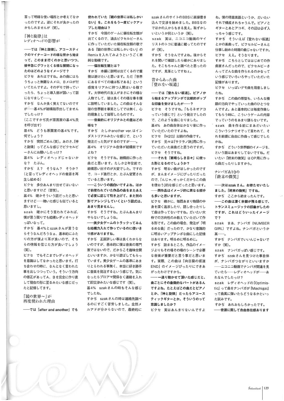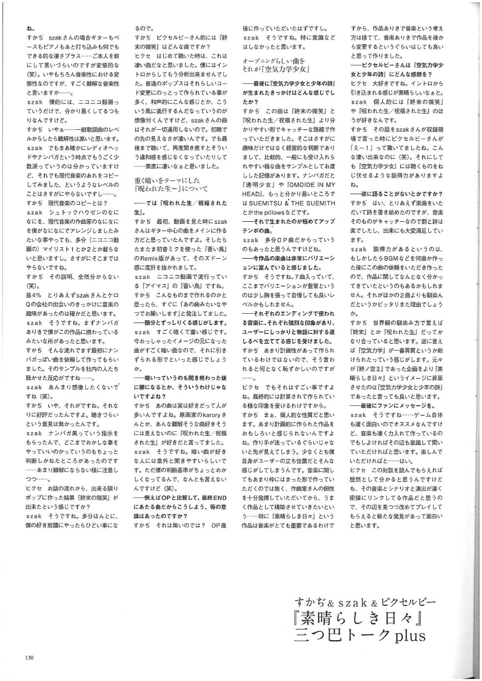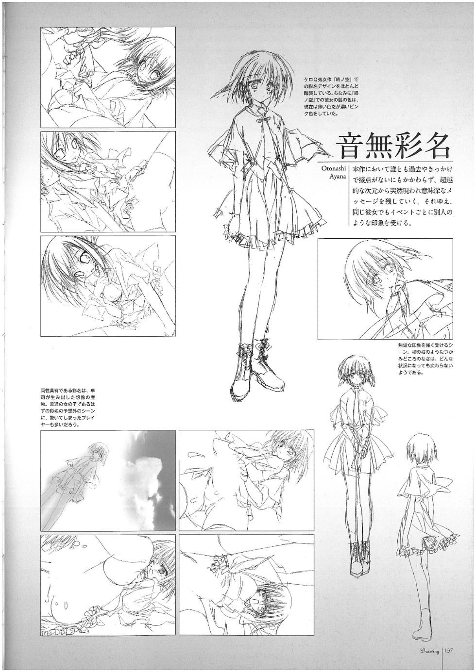 内包含对几位素晴日创作者的访谈, 附带了一个流程图和人物的设定稿/线稿