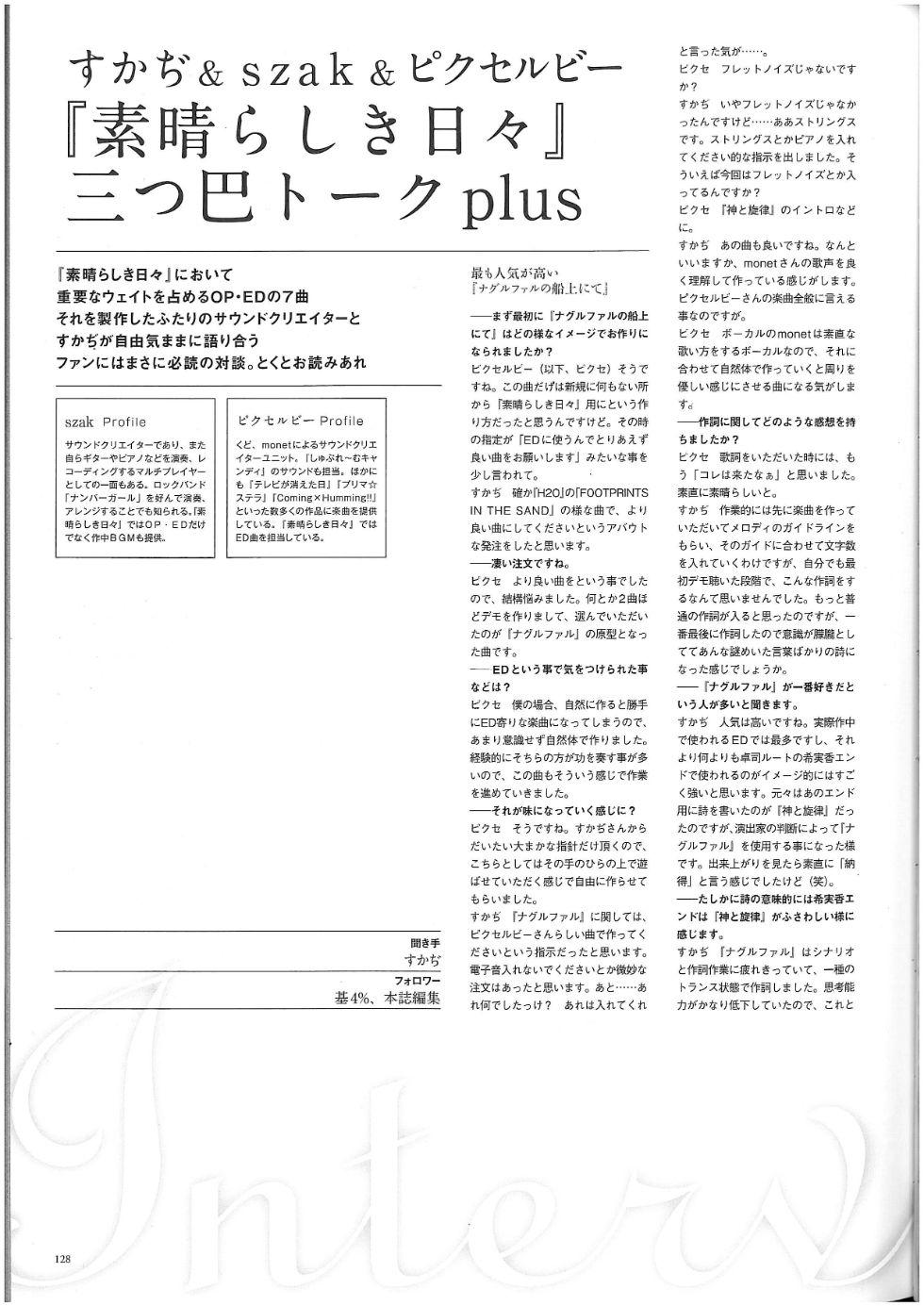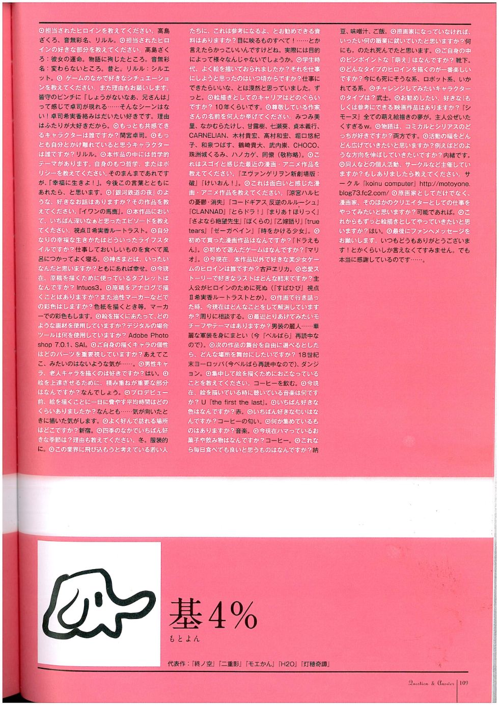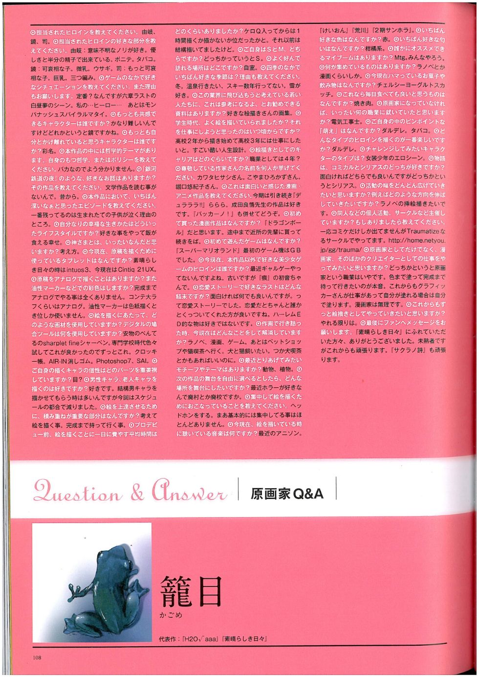 内包含对几位素晴日创作者的访谈, 附带了一个流程图和人物的设定稿/线稿