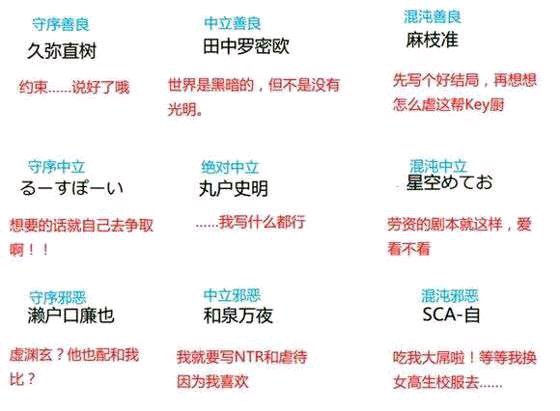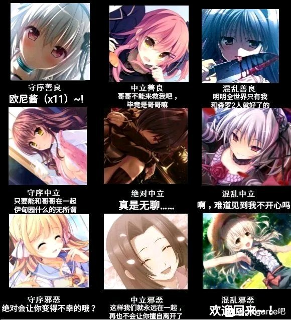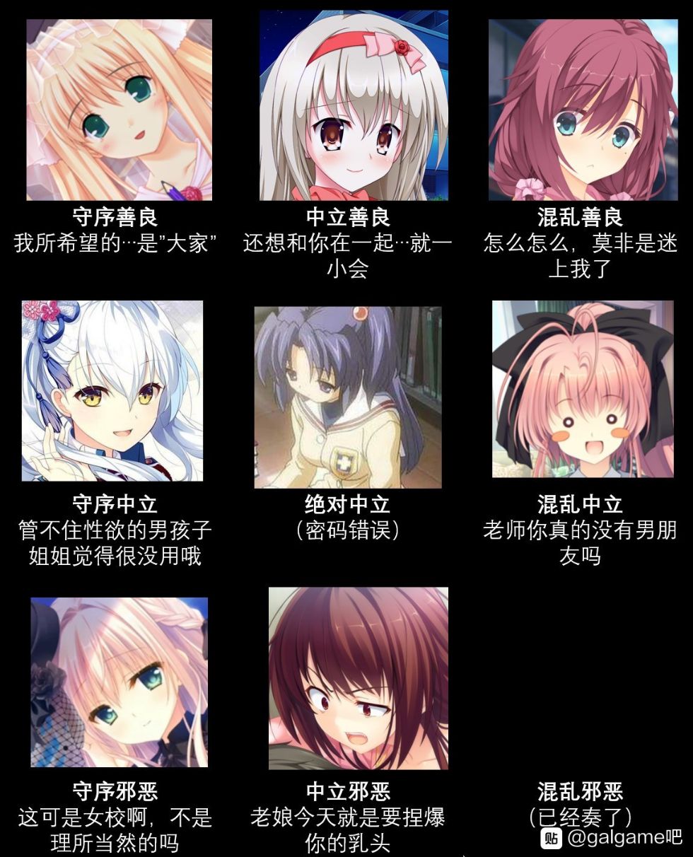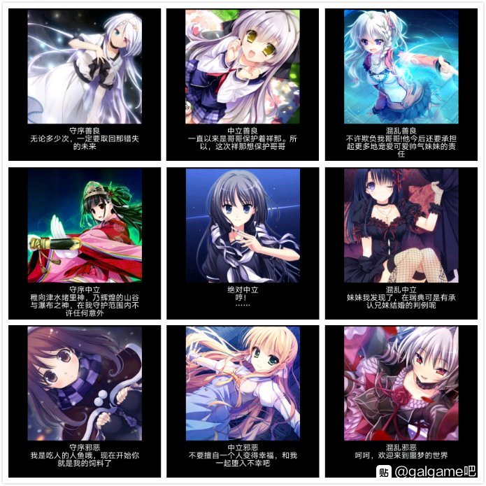 秩序九宫格。有Galgame会社相关的, 也有Galgame女主角相关的。